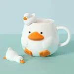 真っ白なボディに映えるオレンジのくちばしや足、ちょこんとついた尾っぽがチャームポイントの食卓が楽しくなるデザインです。