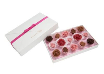 ミルク、ミルクホワイト、セミビターに鮮やかさを添える甘酸っぱいラズベリーとイチゴのショコラローズ2種類を詰め合わせました。