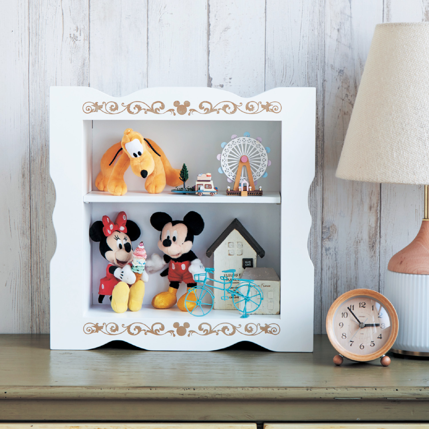 ●マグカップやツムツムなど小物を飾って収納できる、額縁風ディスプレイボックス